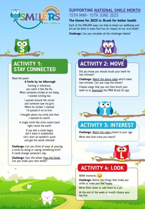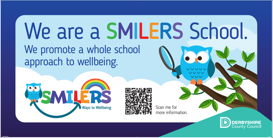 As a school we are working closely with Derbyshire County Council to be part of their SMILERS campaign. Smilers is an acronym to help us remember the things we can do to improve our own mental health. This is for grown-ups, as well as for children.