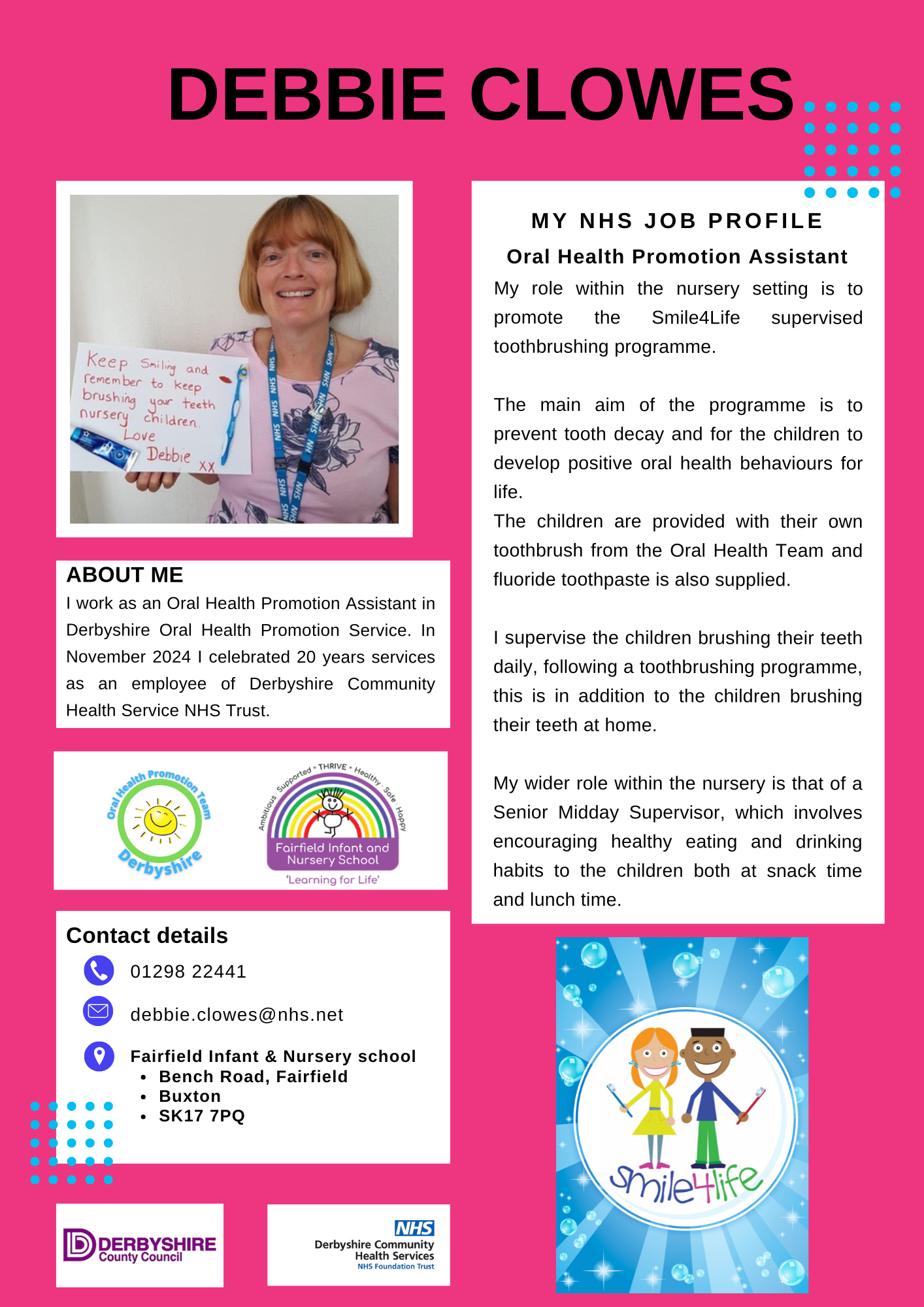 Debbie provides extra support to children who need it and helps the children to clean their teeth every day.